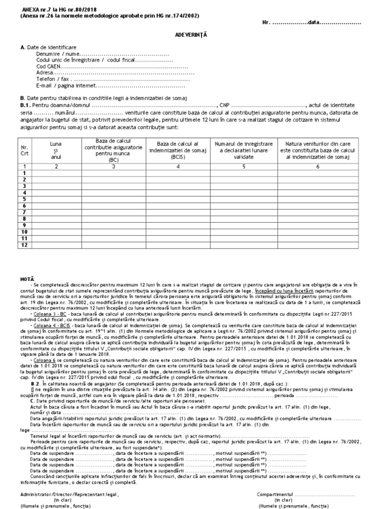 Adeverinta Anexa 7 La Normele De Aplicare L76