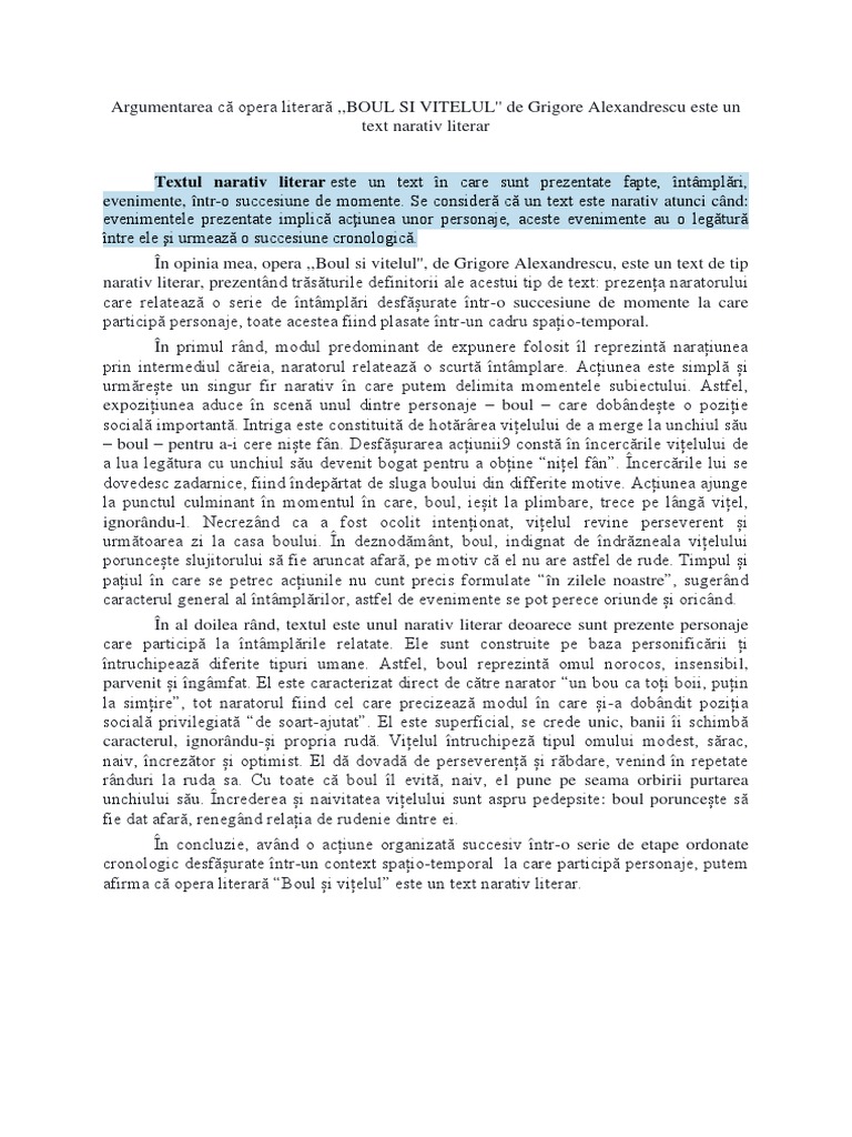 Argumenteaza Apartenenta La Specia Literara Basm Cult A Unui Text Narativ Studiat