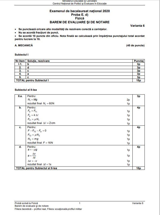 Subiecte Fizică 2019 Edu Ro Baremul De Corectare La Examenul De