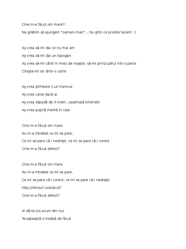 Cine M A Facut Om Mare Lyrics Deliria Only On Jiosaavn