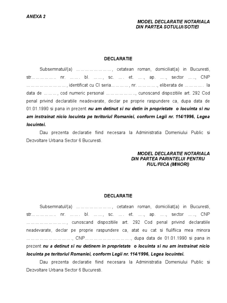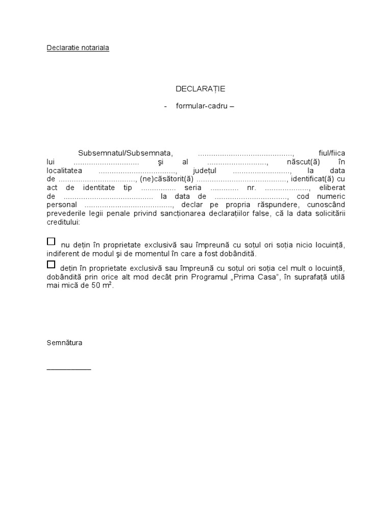 Declaratie Notariala Pe Proprie Raspundere Model
