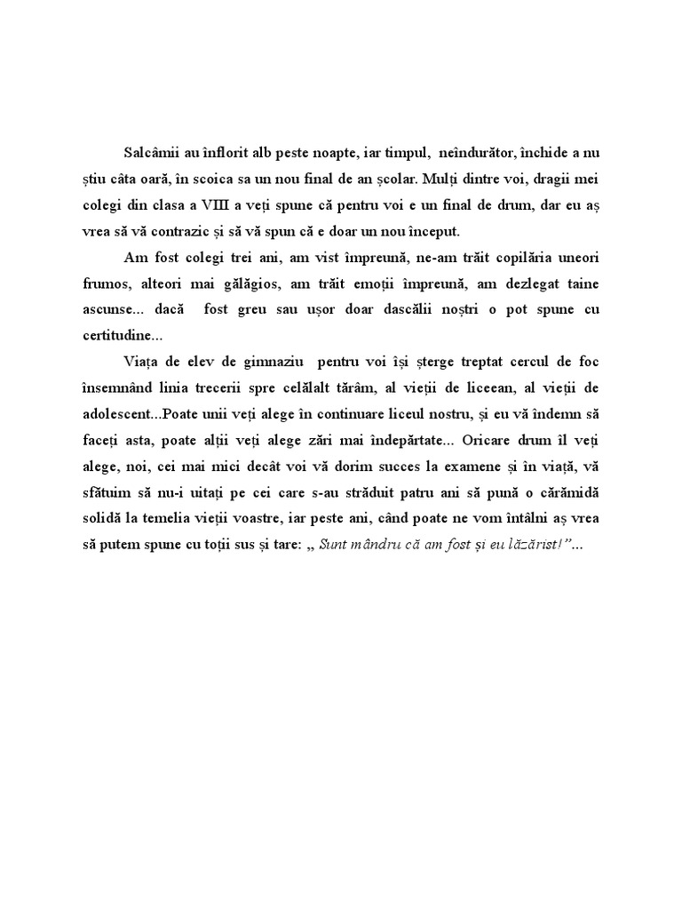 Discurs De Sfarsit De Clasa A 8 A