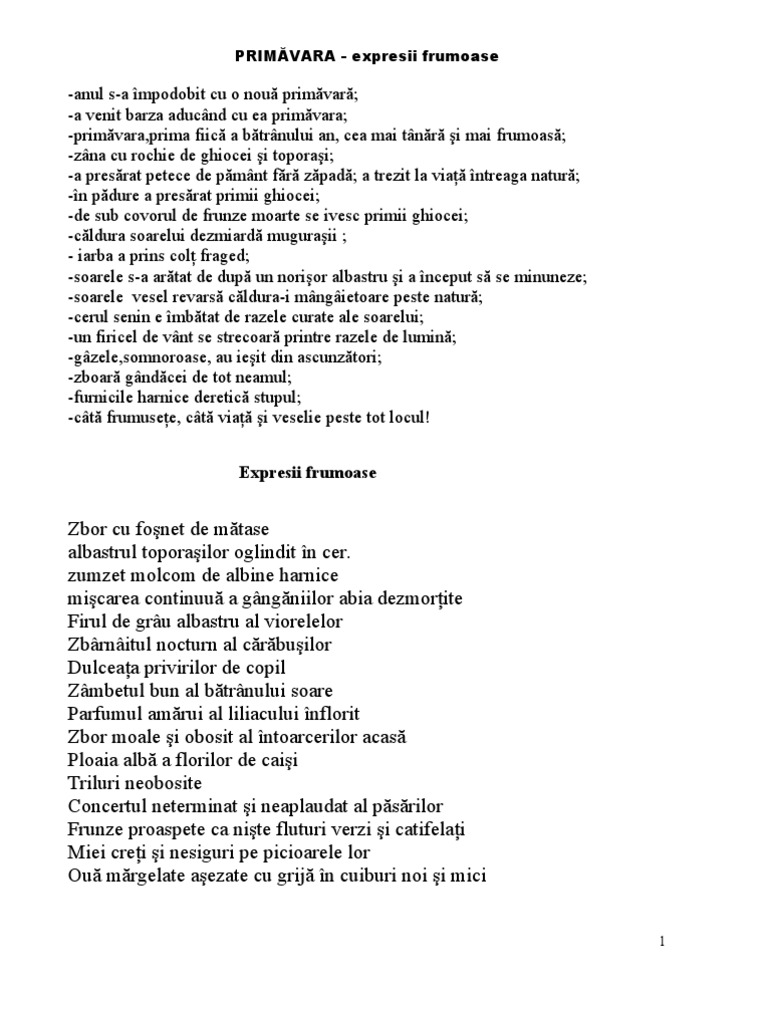 Expresii Frumoase Ce Pot Fi Folosite In Compuneri Cu Titlul