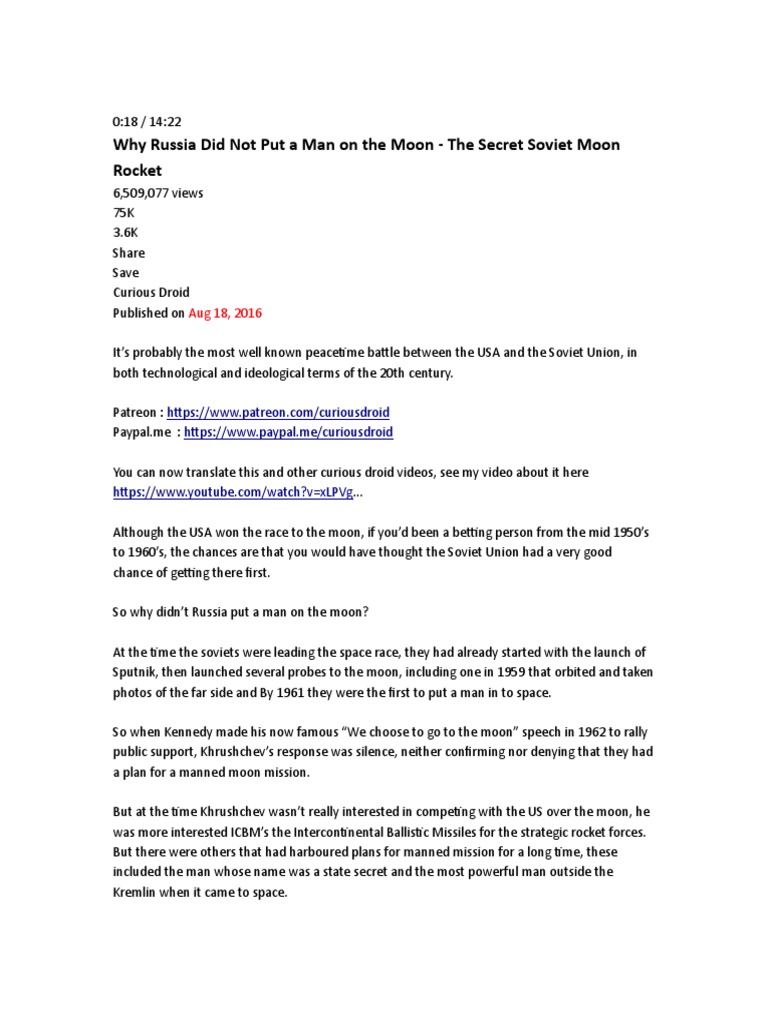 Why Russia Did Not Put A Man On The Moon The Secret Soviet Moon