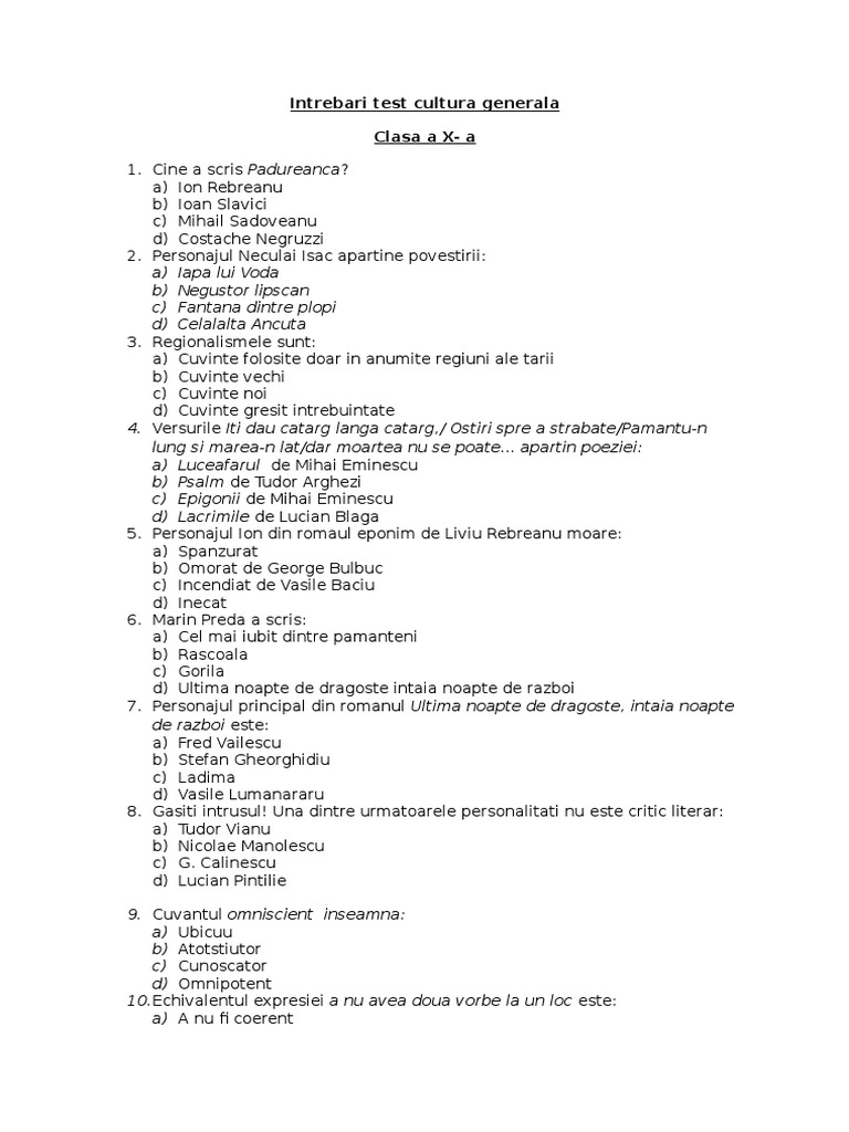 Intrebari Teste Cultura Generala Pdf Document