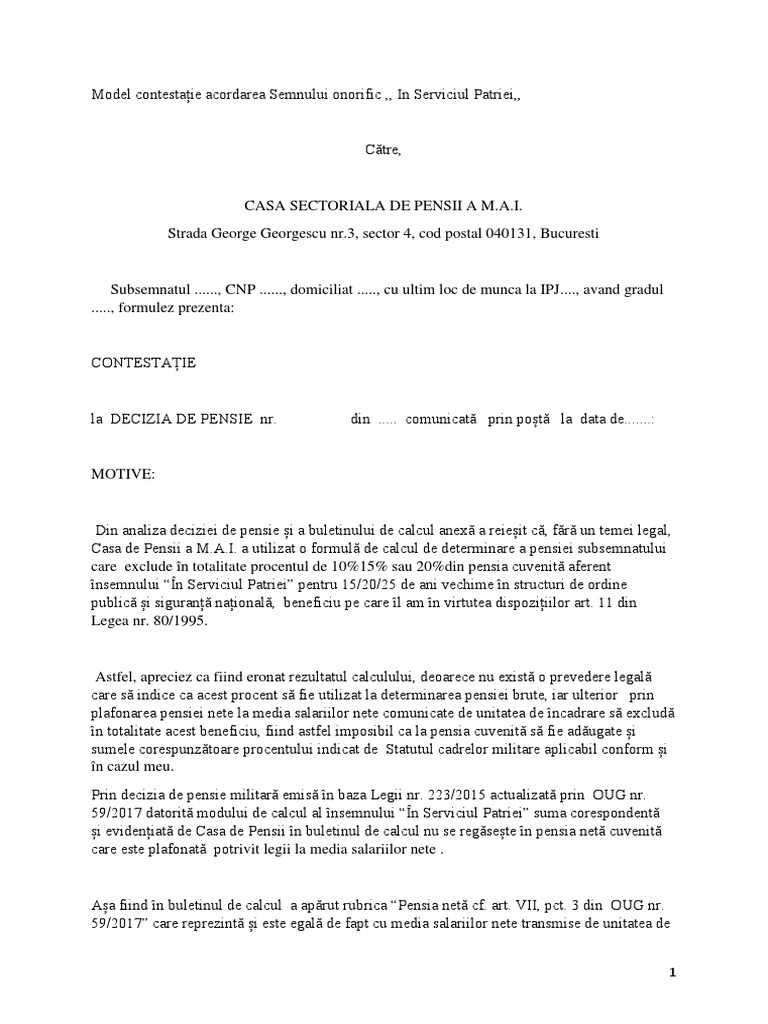Răspuns șablon Al Csp A Mapn și Pentru O Pensie Militară