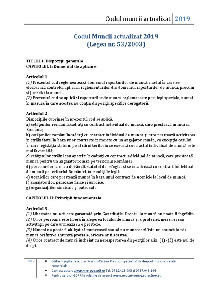 Codul Muncii 2019 Legea 53 2003 Actualizata 2019 Word Si Pdf