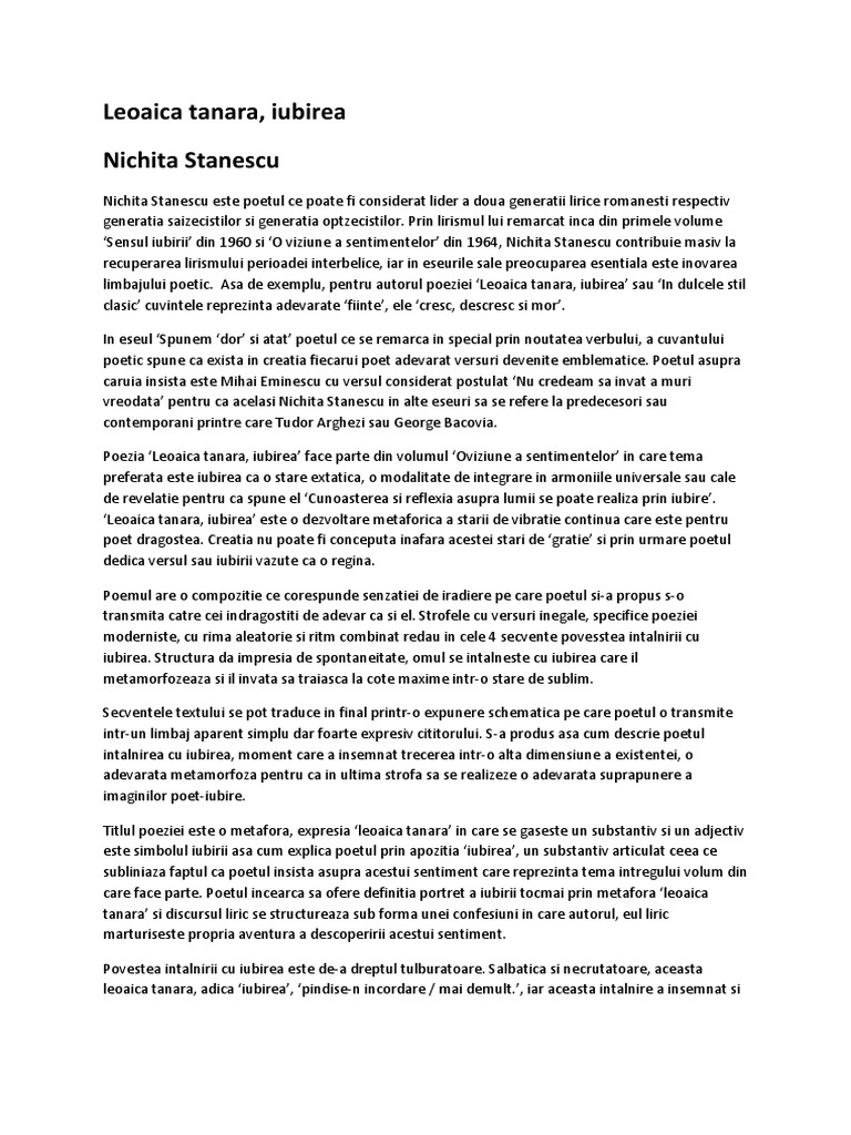 Nighita Stanescu Leoaica Tanara Iubirea Comentariu Bac