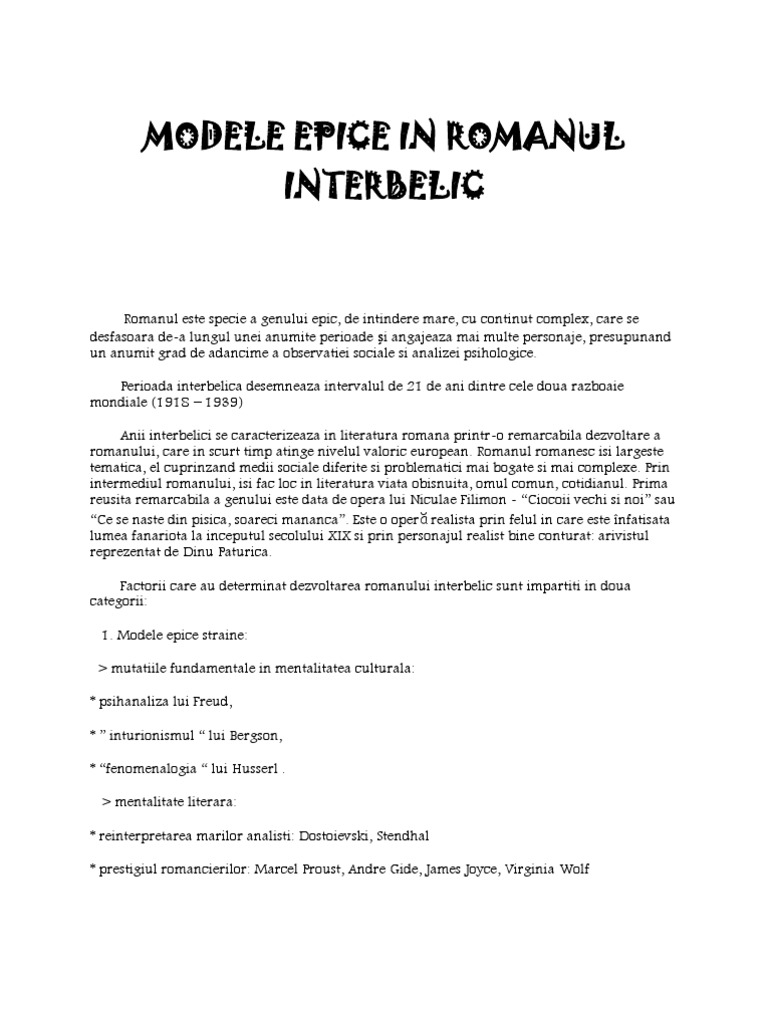 Referat Modele Epice In Romanul Interbelic 481254 Graduo