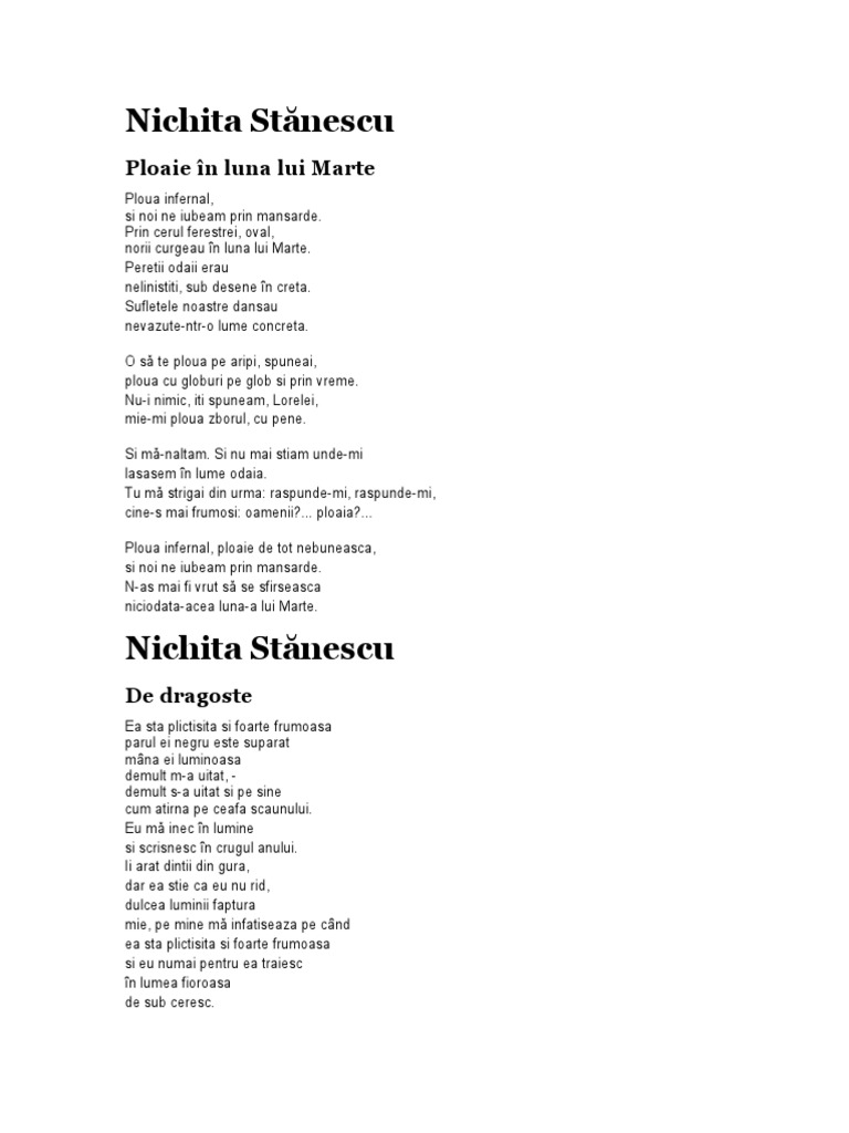 Nichita Stanescu Poezii De Dragoste