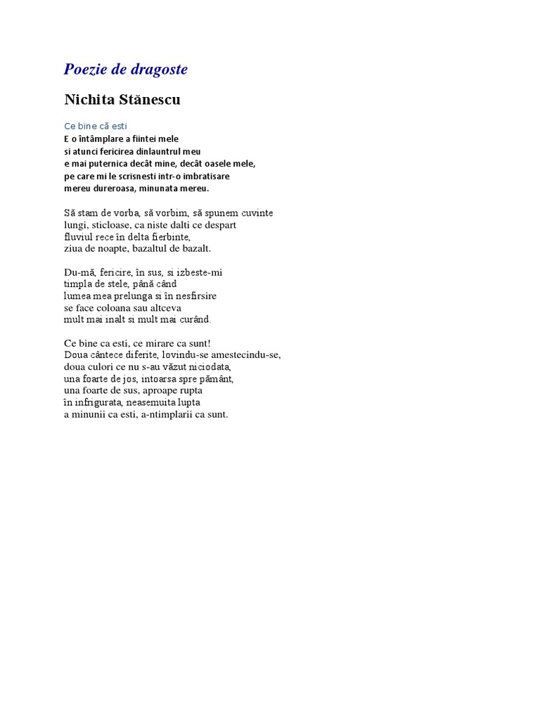 Http Dindragoste Unica Ro Poezii De Dragoste Nichita Stanescu Ce