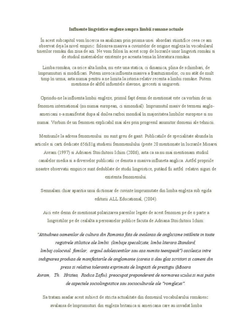 Influente Lingvistice Engleze Asupra Limbii Romane Actuale