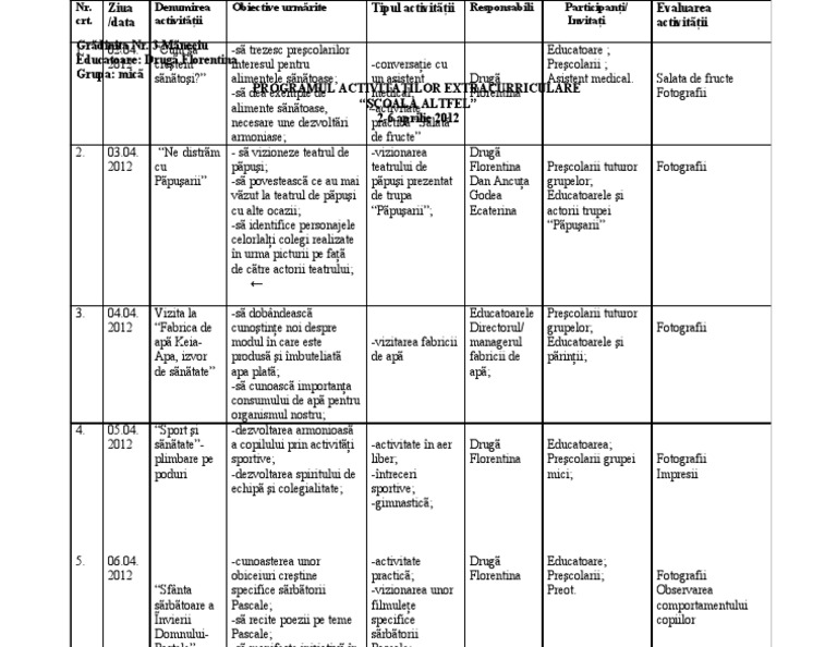 Planificare Scoala Altfel 2018 2019 Grupa Mică Atanasiu Florentina