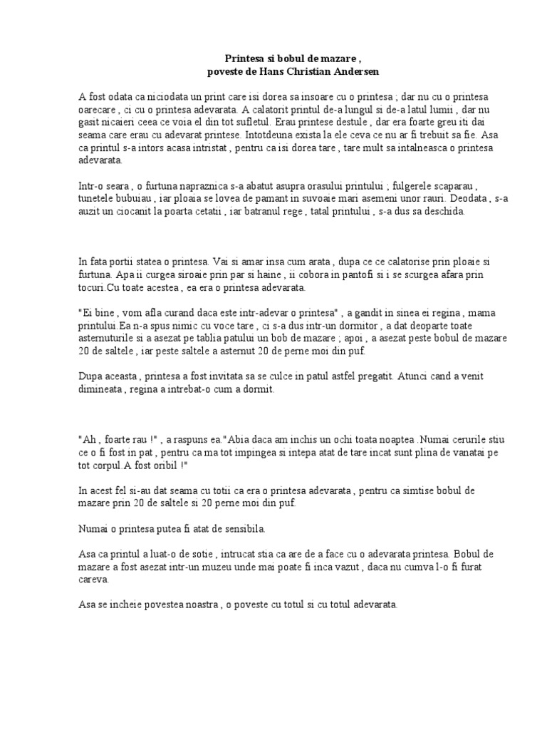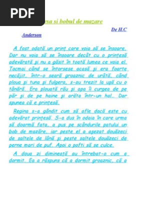 Prinţesa Si Mazărea Poveste De Hans Christian Andersen