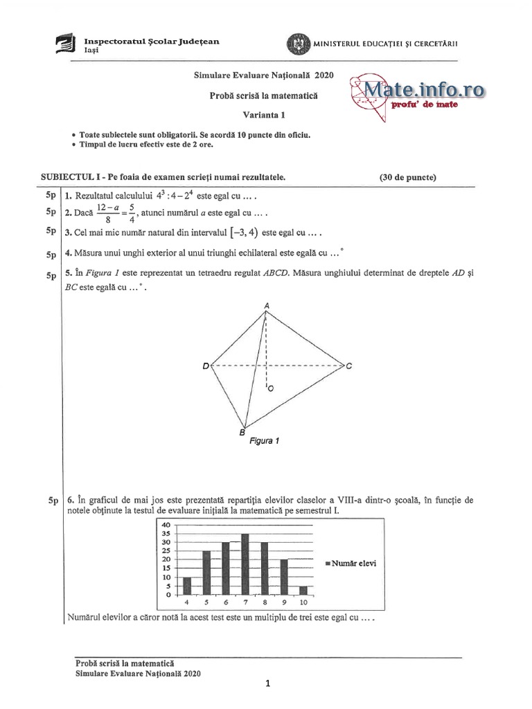 Subiecte Simulare Matematică Clasa A Vii A Subiectele Grilă și Au