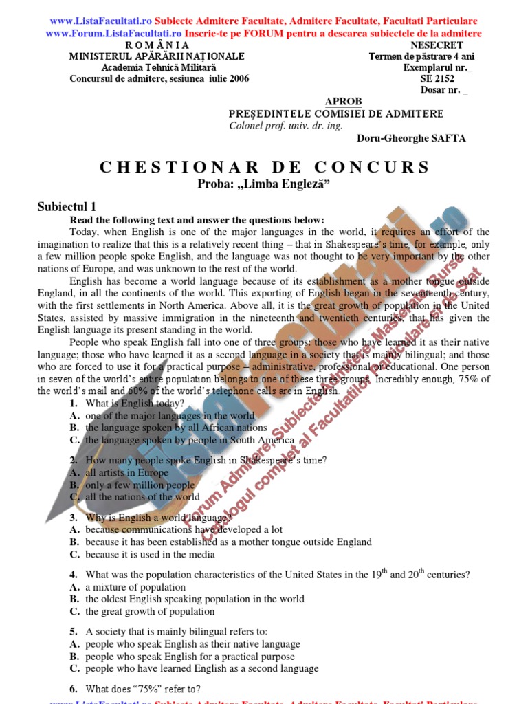 Subiecte Admitere Academia De Politie