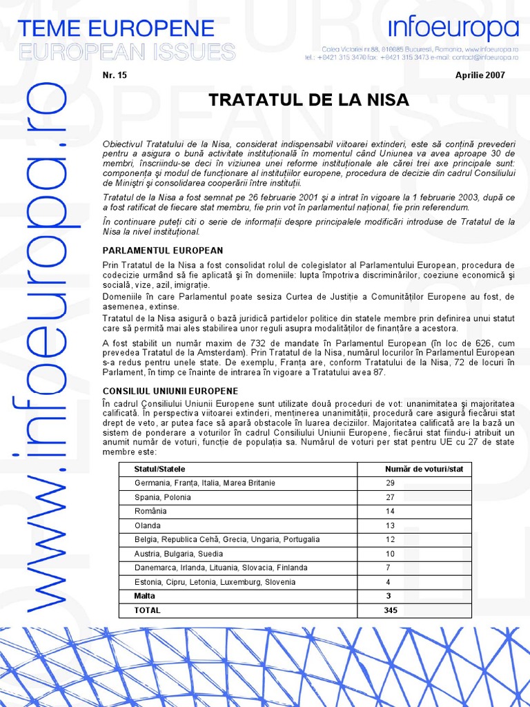 Scribd es red social de lectura y publicación más importante del mundo. 5 modalitățile de vot care în înțelesul prezentului articol se aplică parlamentului european consiliului european și consiliului sunt prevăzute la articolul 354 din tratatul privind funcționarea uniunii europene. For faster navigation this iframe is preloading the wikiwand page for tratatul de la nisa. Obiectivele în concluziile sale consiliul european de la helsinki din 1999 a afirmat că ue trebuia să fie capabilă să primească ca noi state membre până la sfârșitul lui 2002 țările.